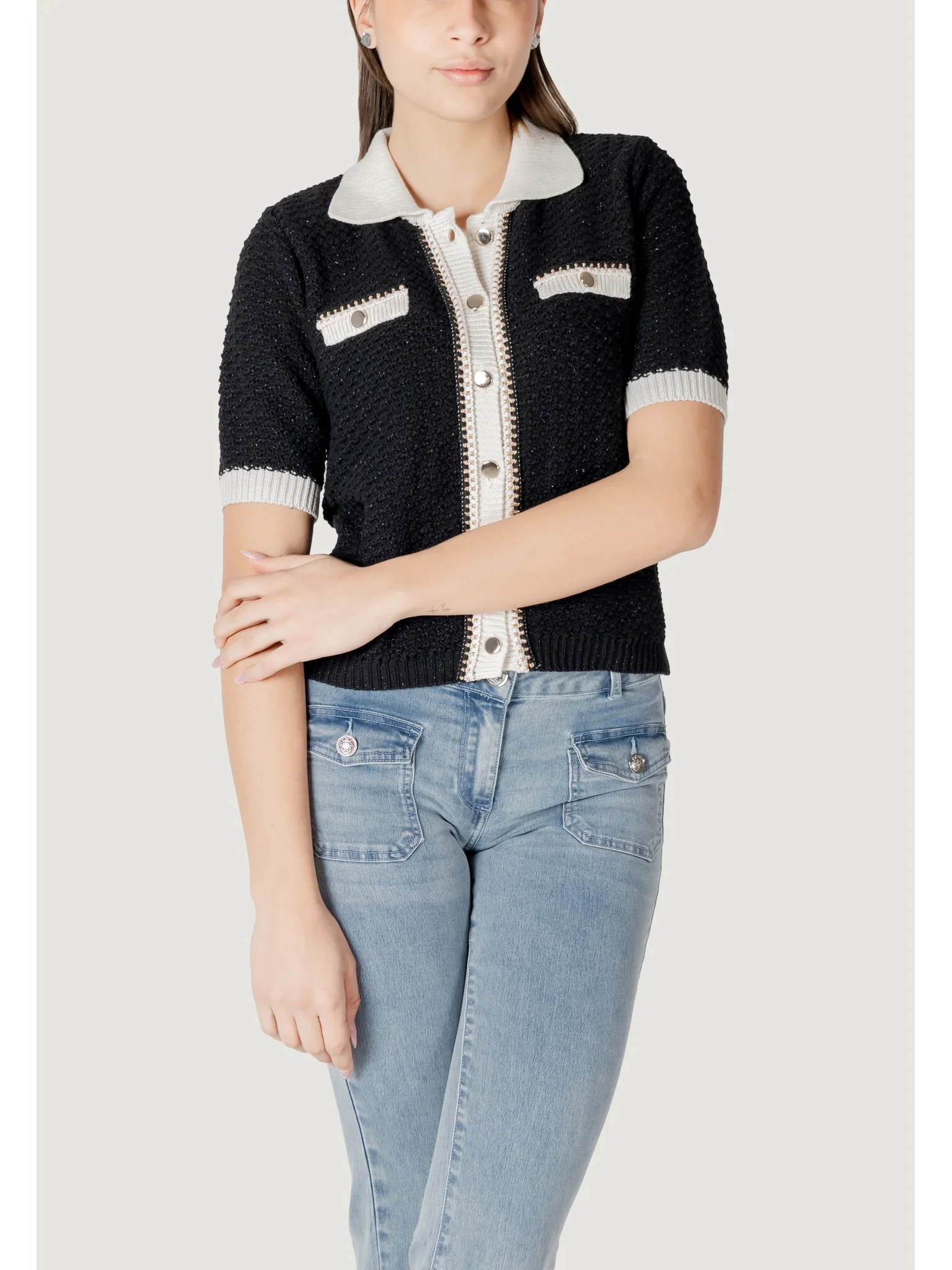 Cárdigan manga corta negro contraste blanco Morgan