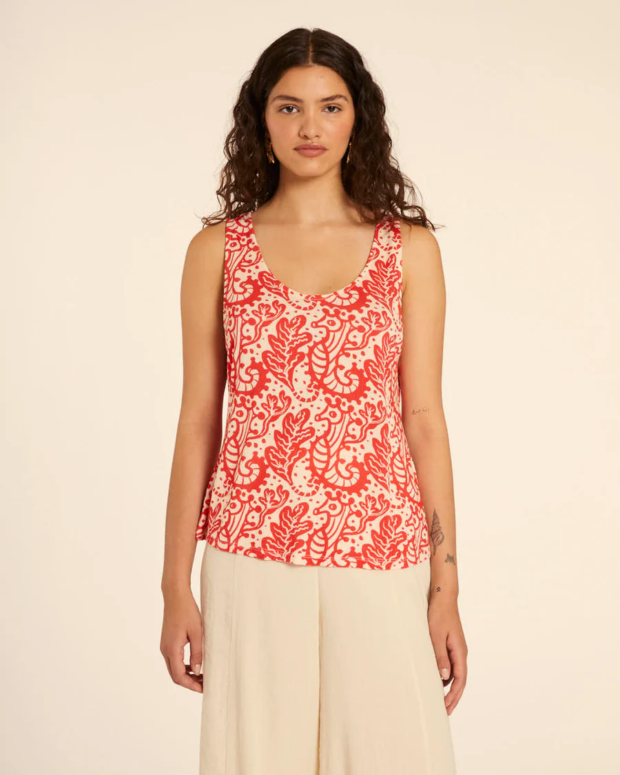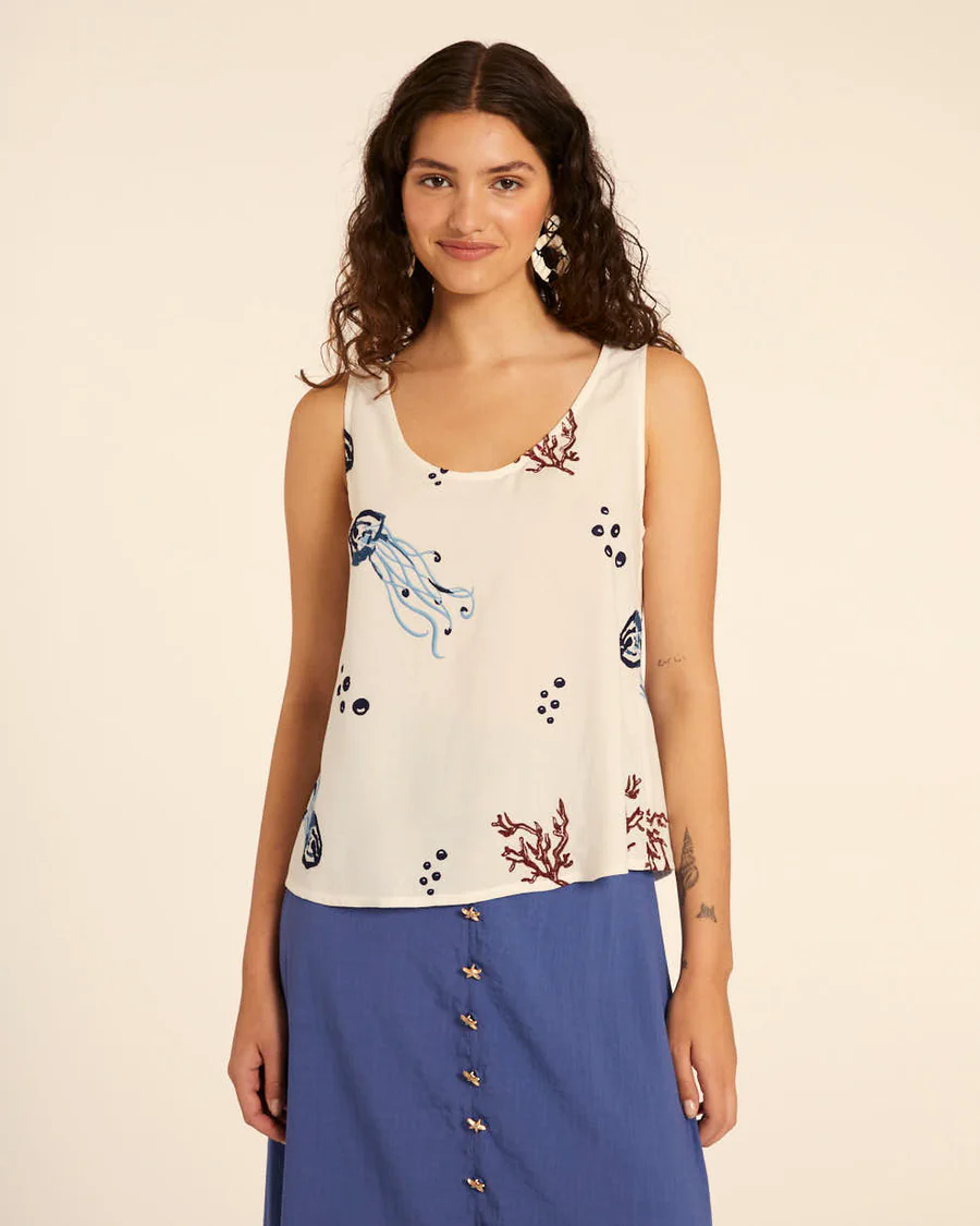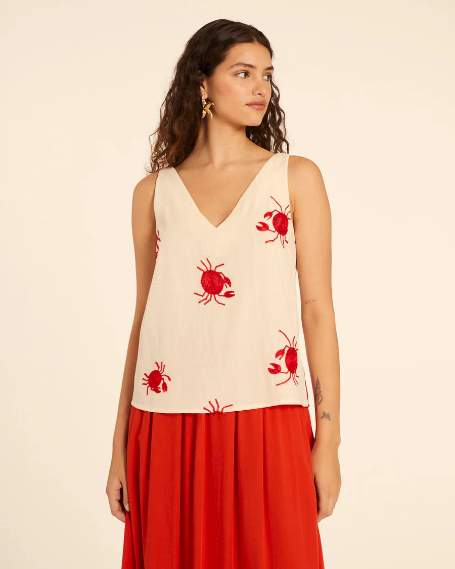 Top crema de tirantes bordado cangrejos PepaLoves