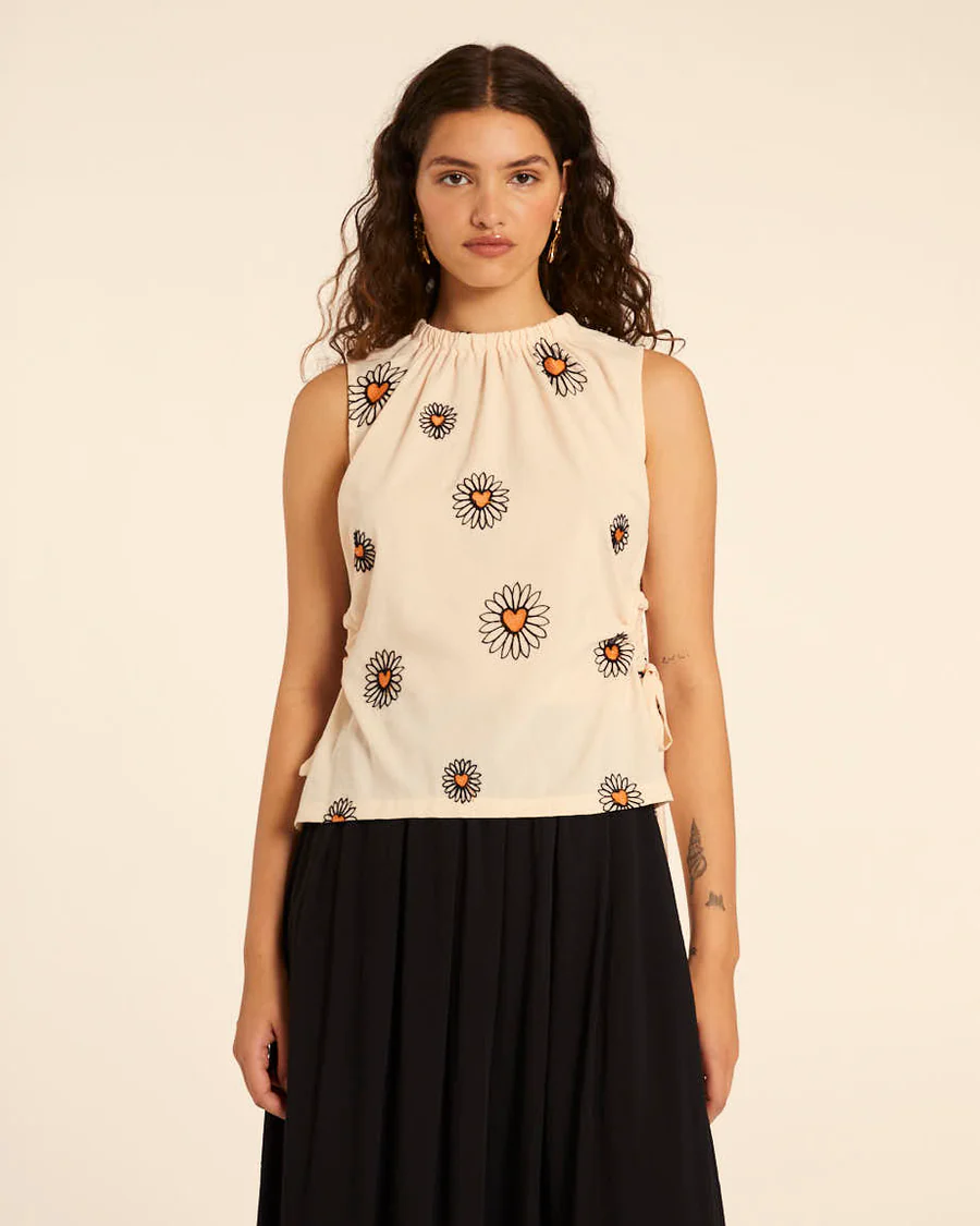 Top cuello a la caja bordado margaritas PepaLoves