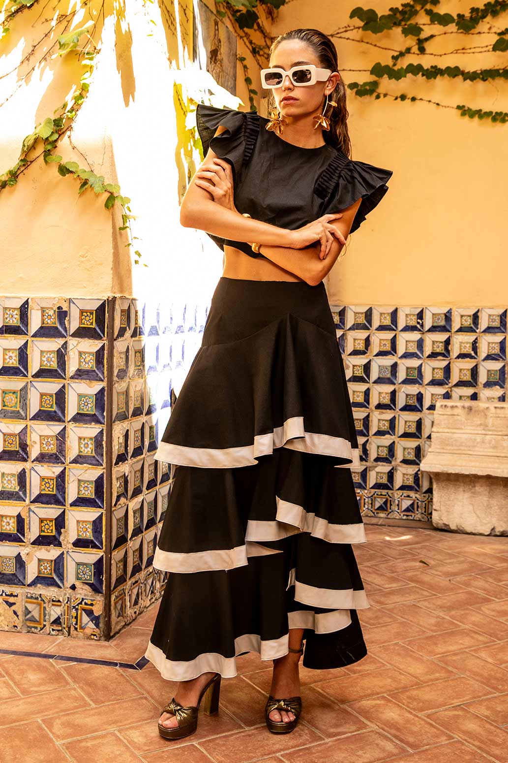 Top liso con volantes Scripta