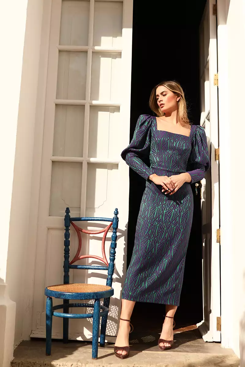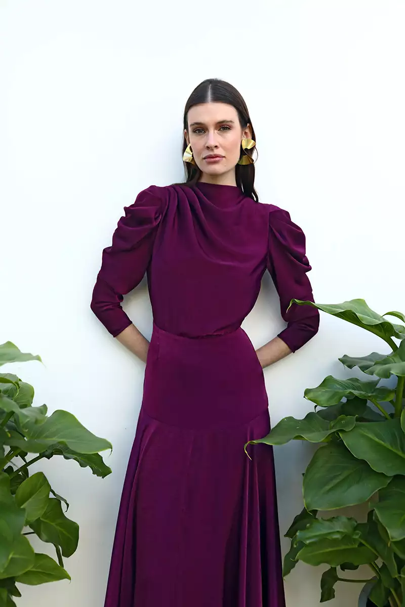 Vestido midi con detalle de apertura en las mangas SCRIPTA