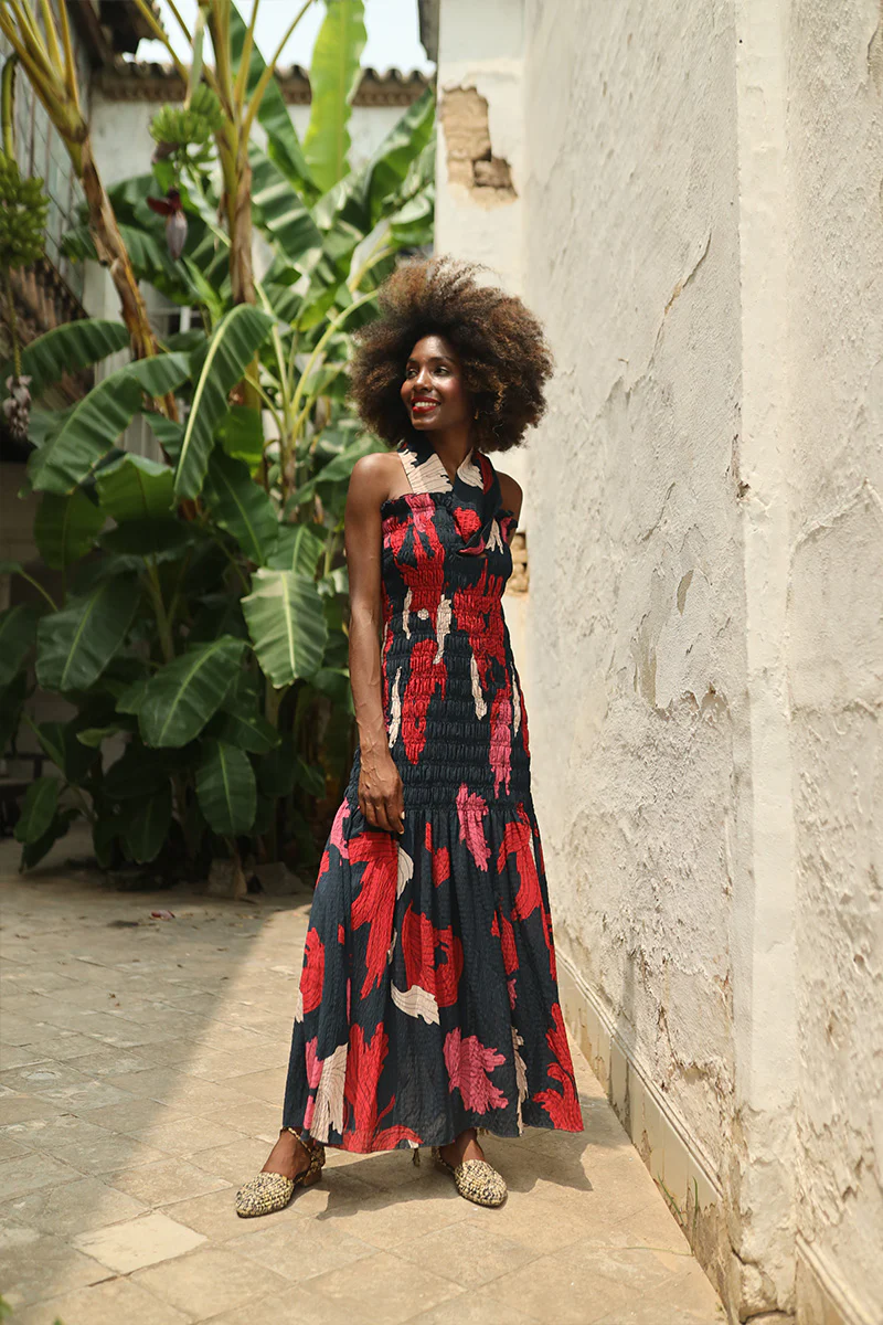 Vestido midi combinado falda vuelo Downtown Green Mioh