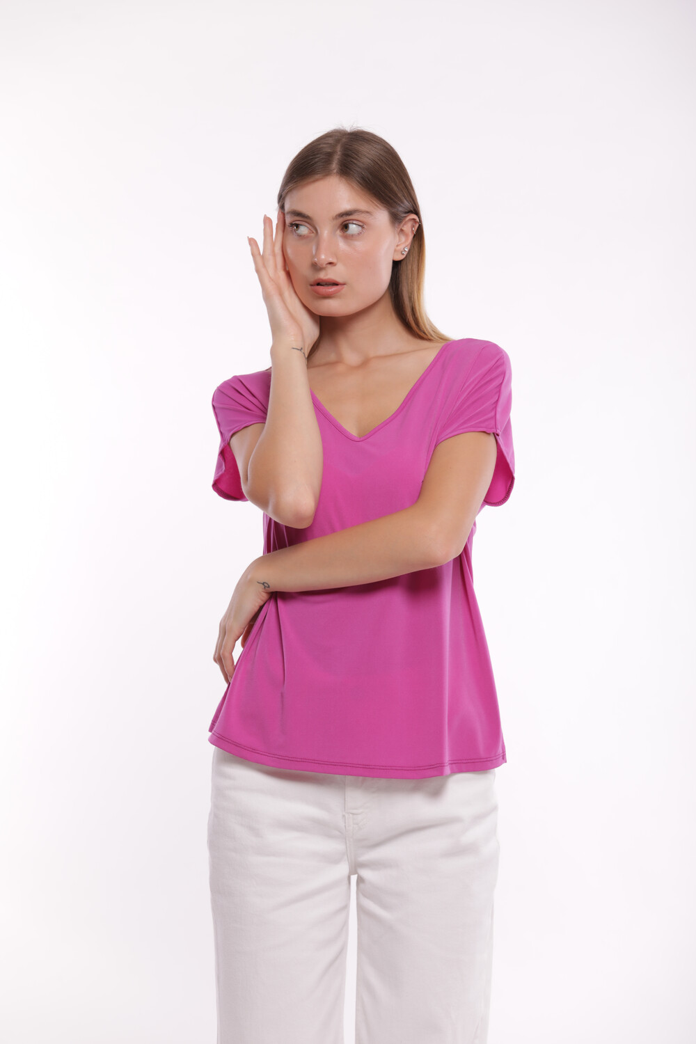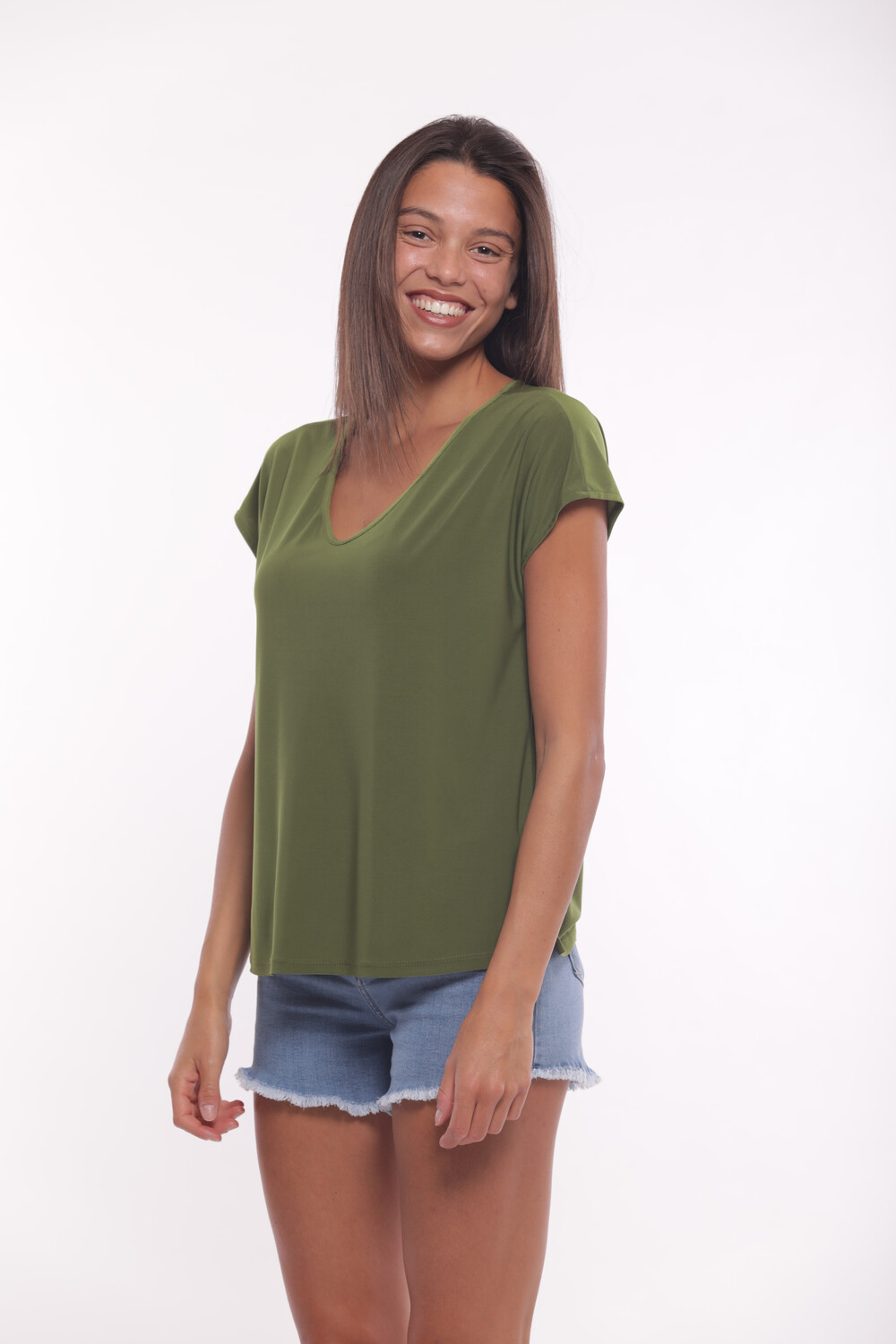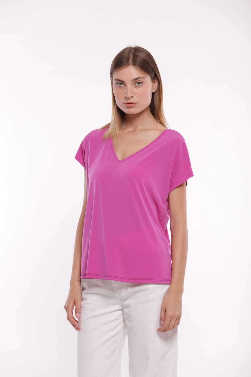 Blusa manga corta escote en V, aperturas laterales, corte recto, prenda cómoda, ligera y fresca para los días calurosos. Posibilidad de combinar con el pantalón del mismo color modelo MSAM-2758 disponible en nuestra categoría de pantalones en nuestra web.