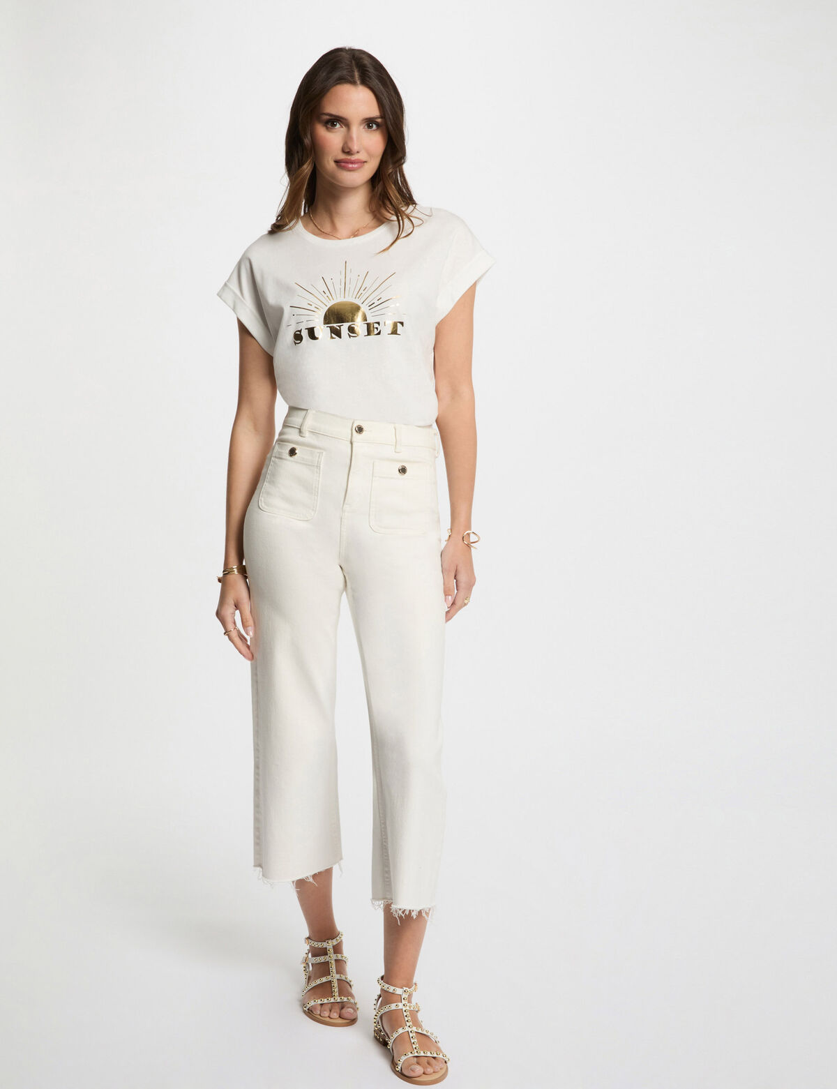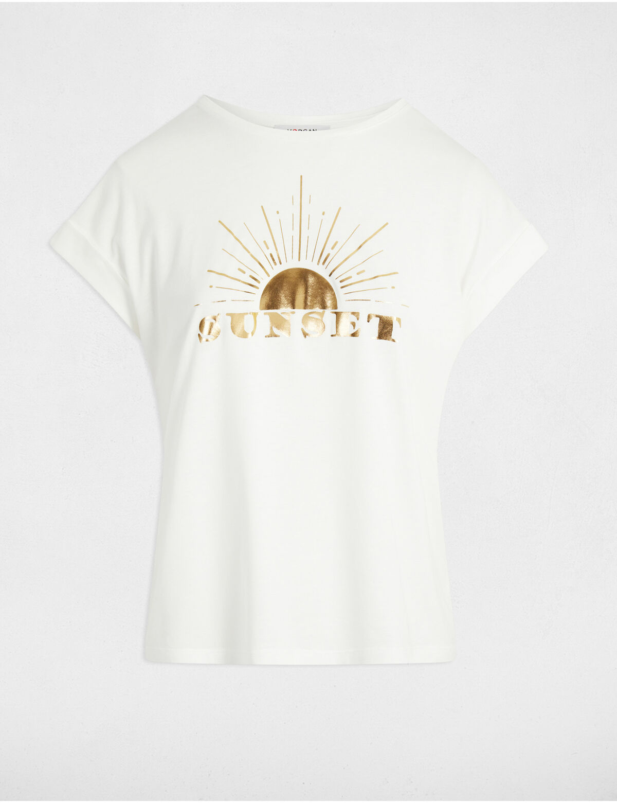 Camiseta con mensaje, corte recto, cuello redondo, manga corta, mensaje SUNSET en la parte delantera, mangas con dobladillo. Una indispensable de tu fondo de armario para acompañar cualquiera de tus looks.